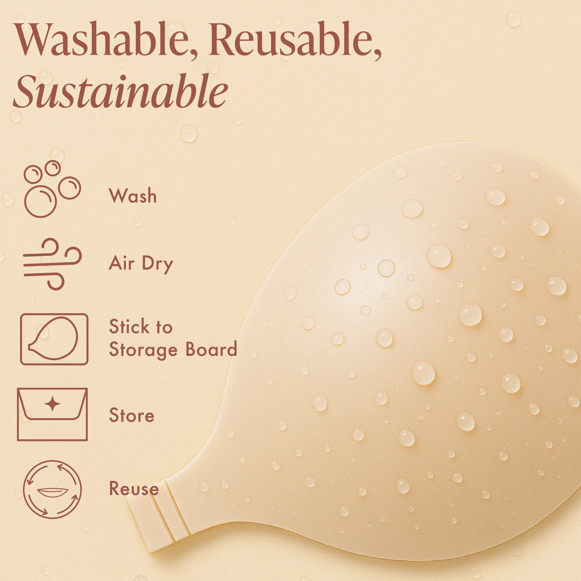 Eco-Friendly & Sustainable: Made with medical-grade silicone, our adhesive bra is easily washable and reusable for over 100 times, ensuring sustainability without compromising on quality.