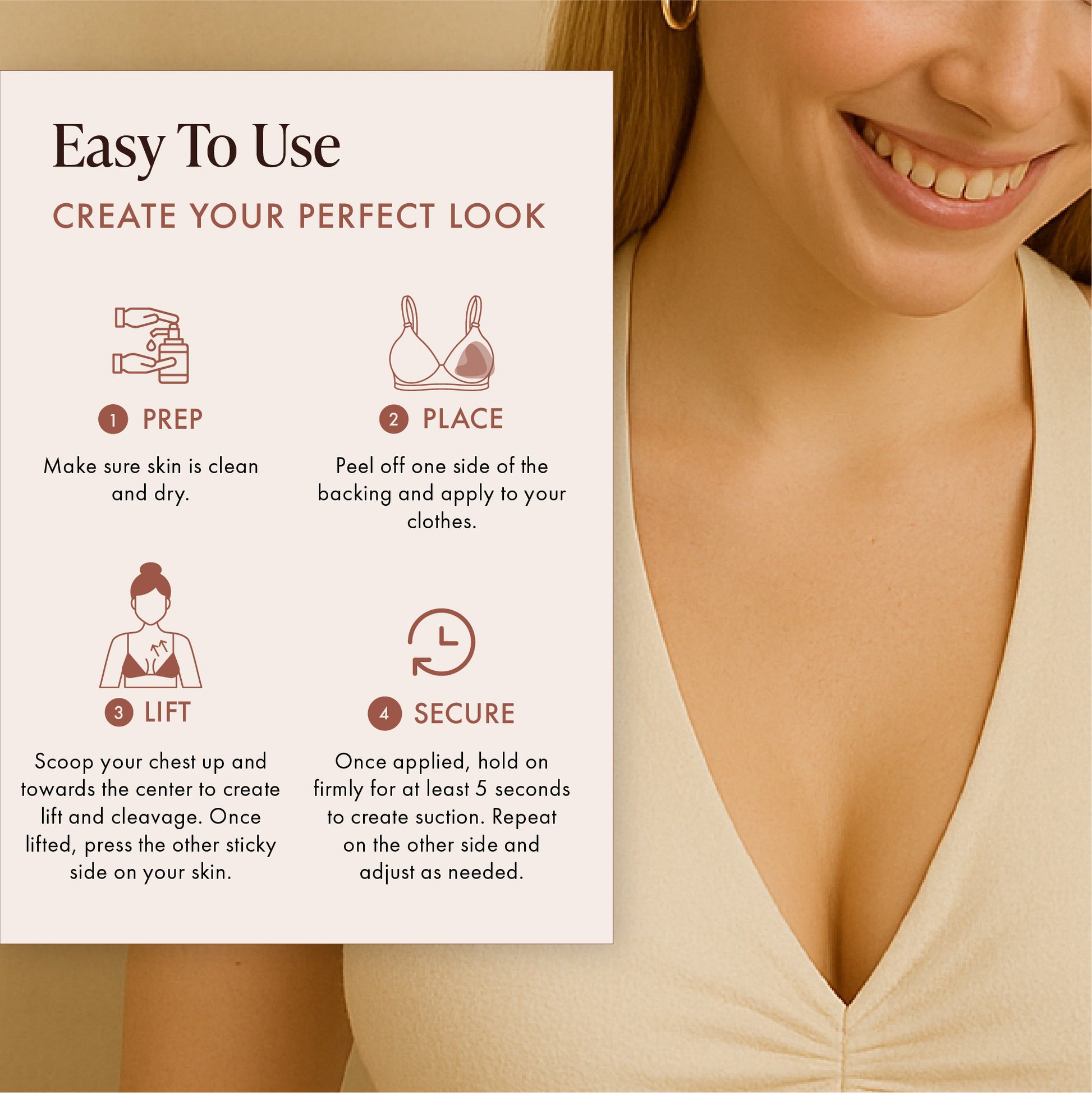 Reusable 50+ Times: From strapless bras for women to push up bikinis, our sticky boobs for women are versatile and reusable. Simply wash and air dry, then you're ready to reuse with any outfit, whether it's a backless strapless bra or a strapless push up bra for a no show bra effect.