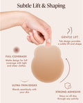 The Perfect Gentle Lift: Our silicone nipple covers have a strong, yet gentle adhesive that makes them perfect for all-day wear with any outfit. The tabs at the top allow you to pull the covers up higher, creating a fuller look and lift.